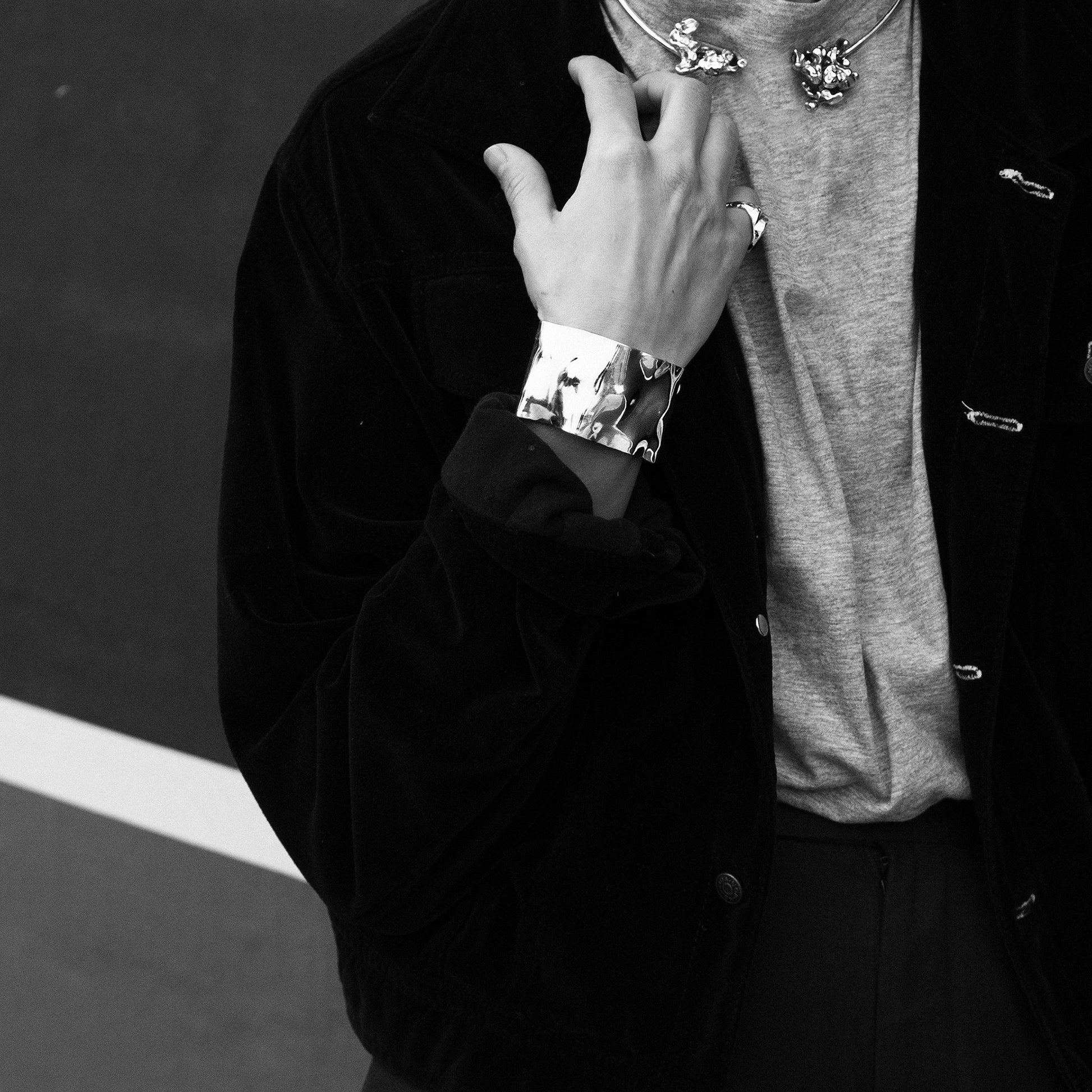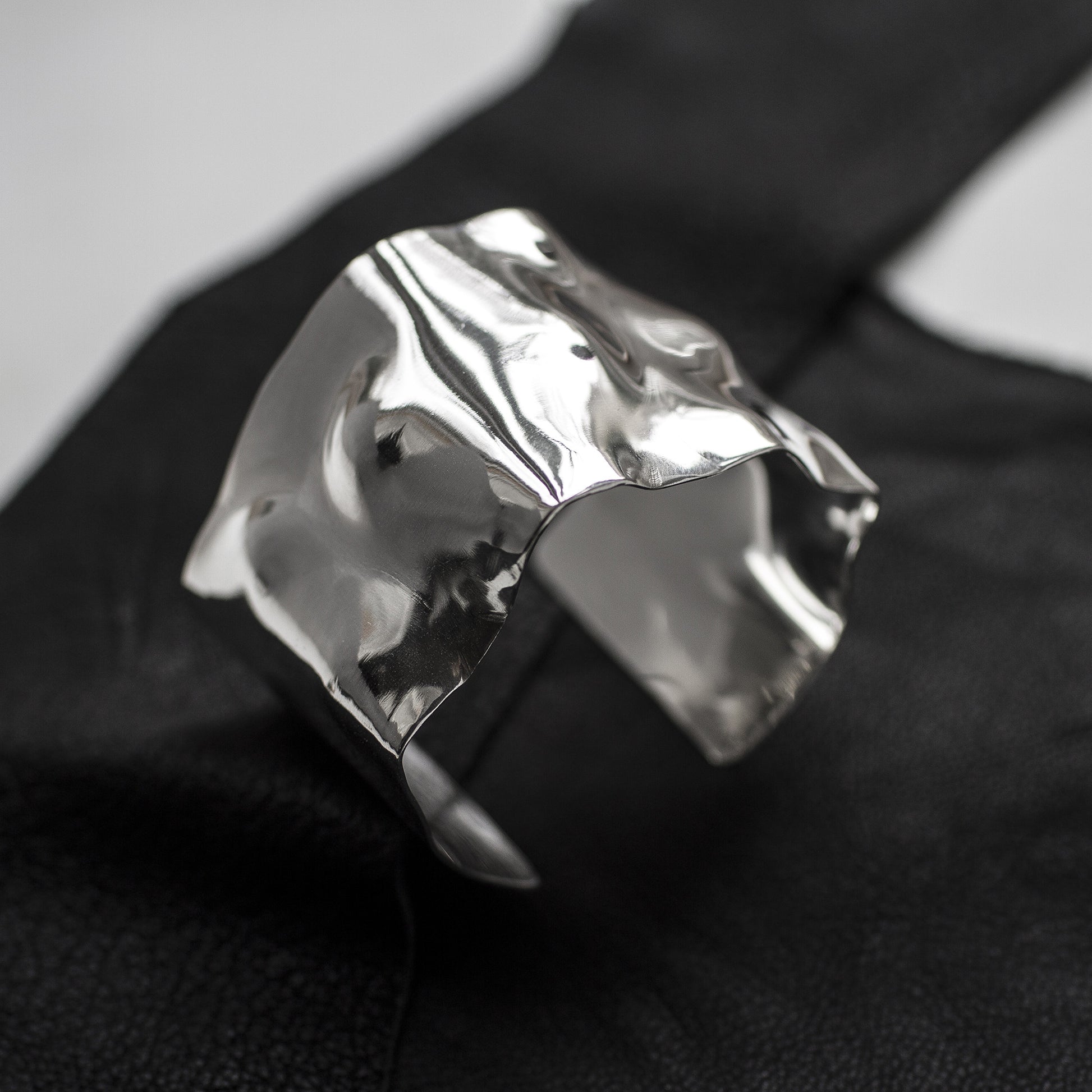Wide statement arm cuff with an organic and uneven surface. The process of making this surface is very free, therefore you will always end up with an unique piece of jewellery.