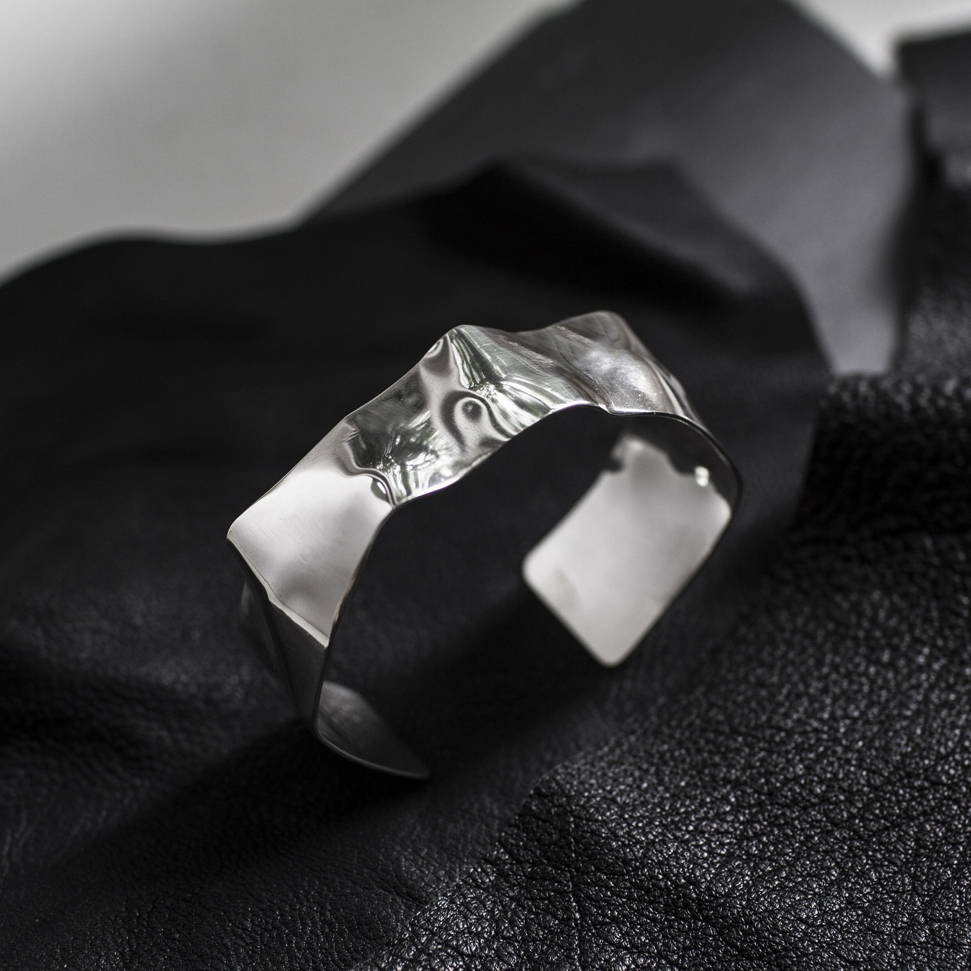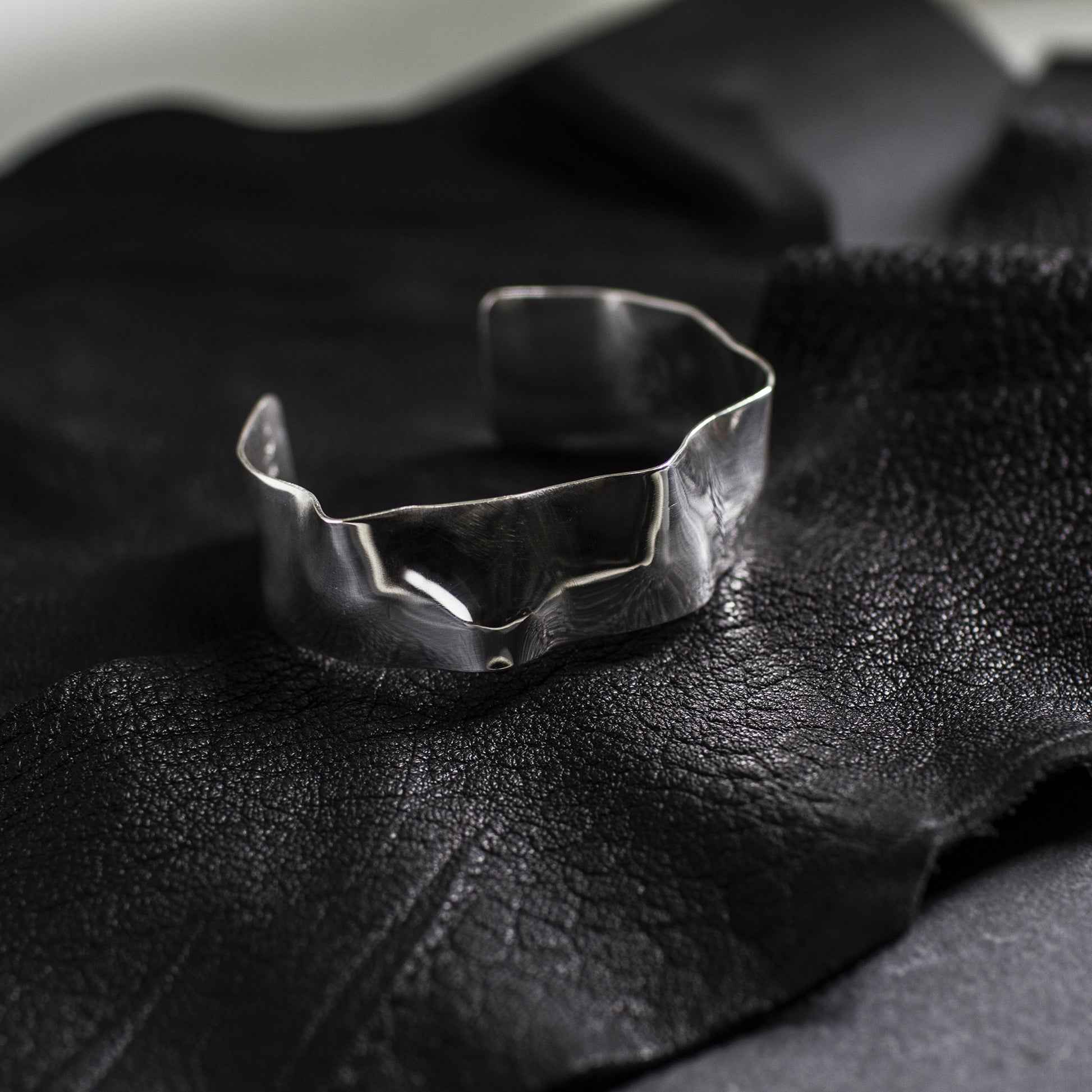 Wide arm cuff with an organic and uneven surface. The process of making this surface is very free, therefore you will always end up with an unique piece of jewellery.