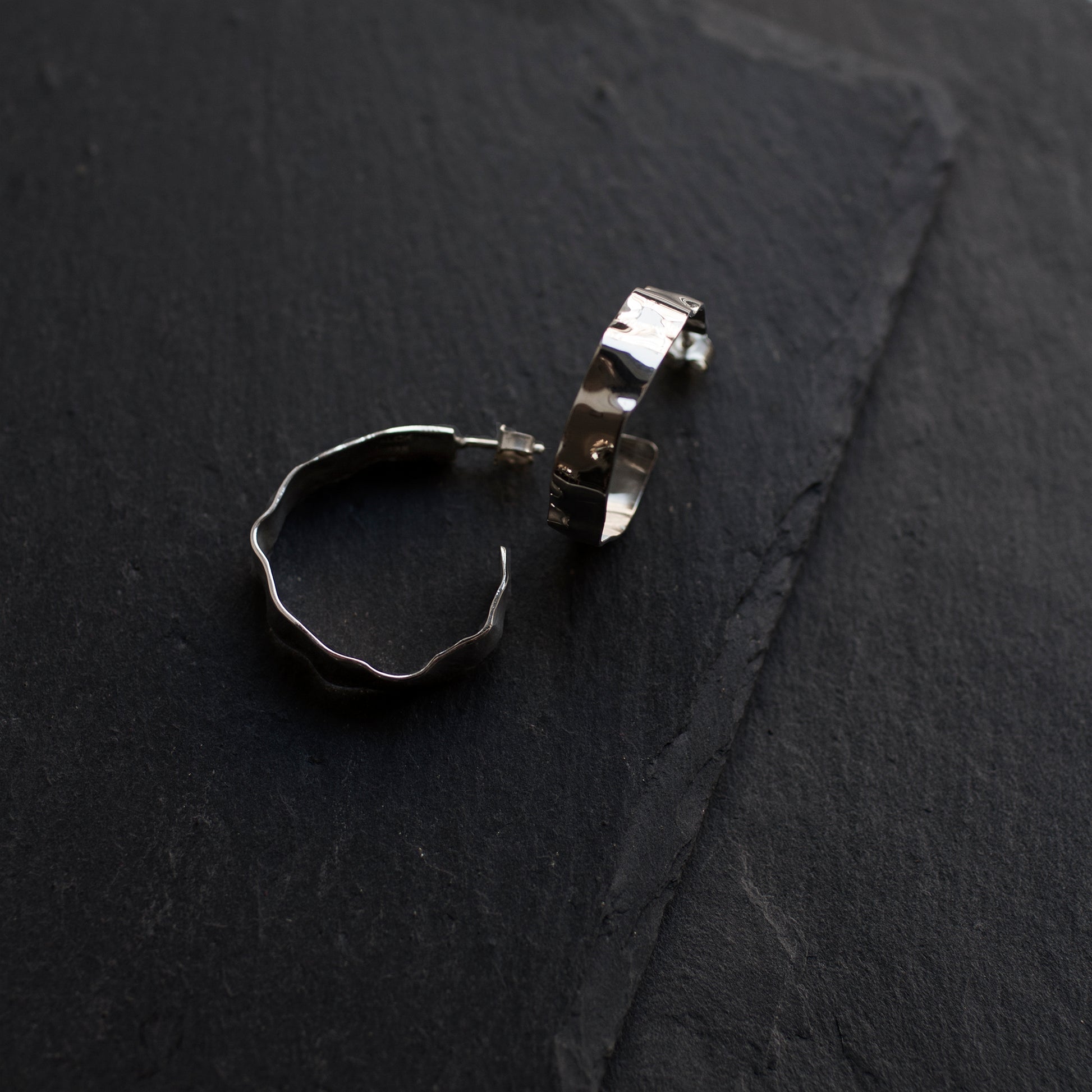 Wide and rough hoop earring with a soft & organic surface. The process of making the surface is very free, therefore you will always end up with an unique piece of jewellery. These hoops are perfect for both everyday use or when you want to dress up.