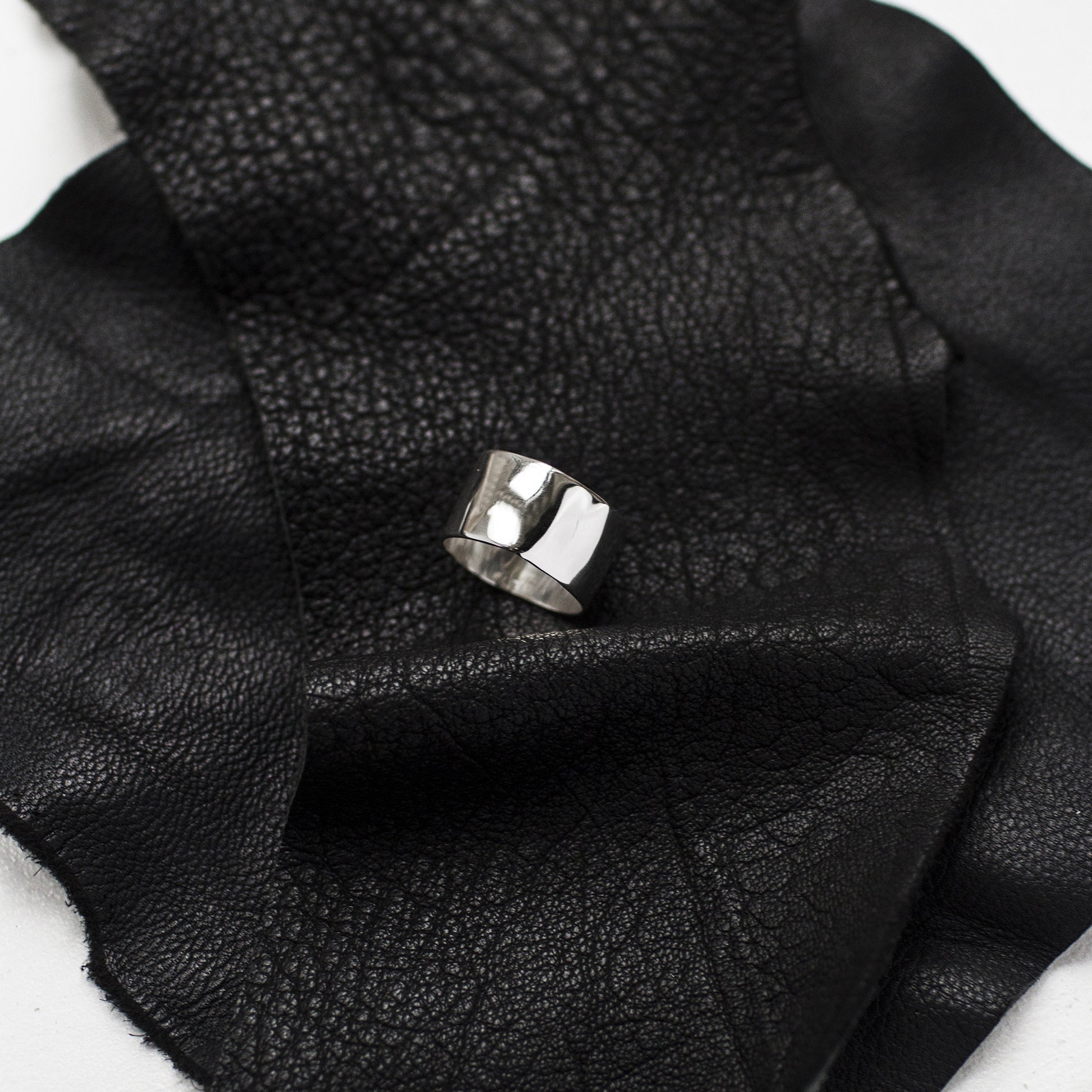 A quite wide ring with an organic and uneven surface. The process of making this surface is very free, therefore you will always end up with an unique piece of jewellery. Wear it as you like and add as many rings as you like. Goes perfectly with the Big Imperfection Ring & Small Imperfection Ring.