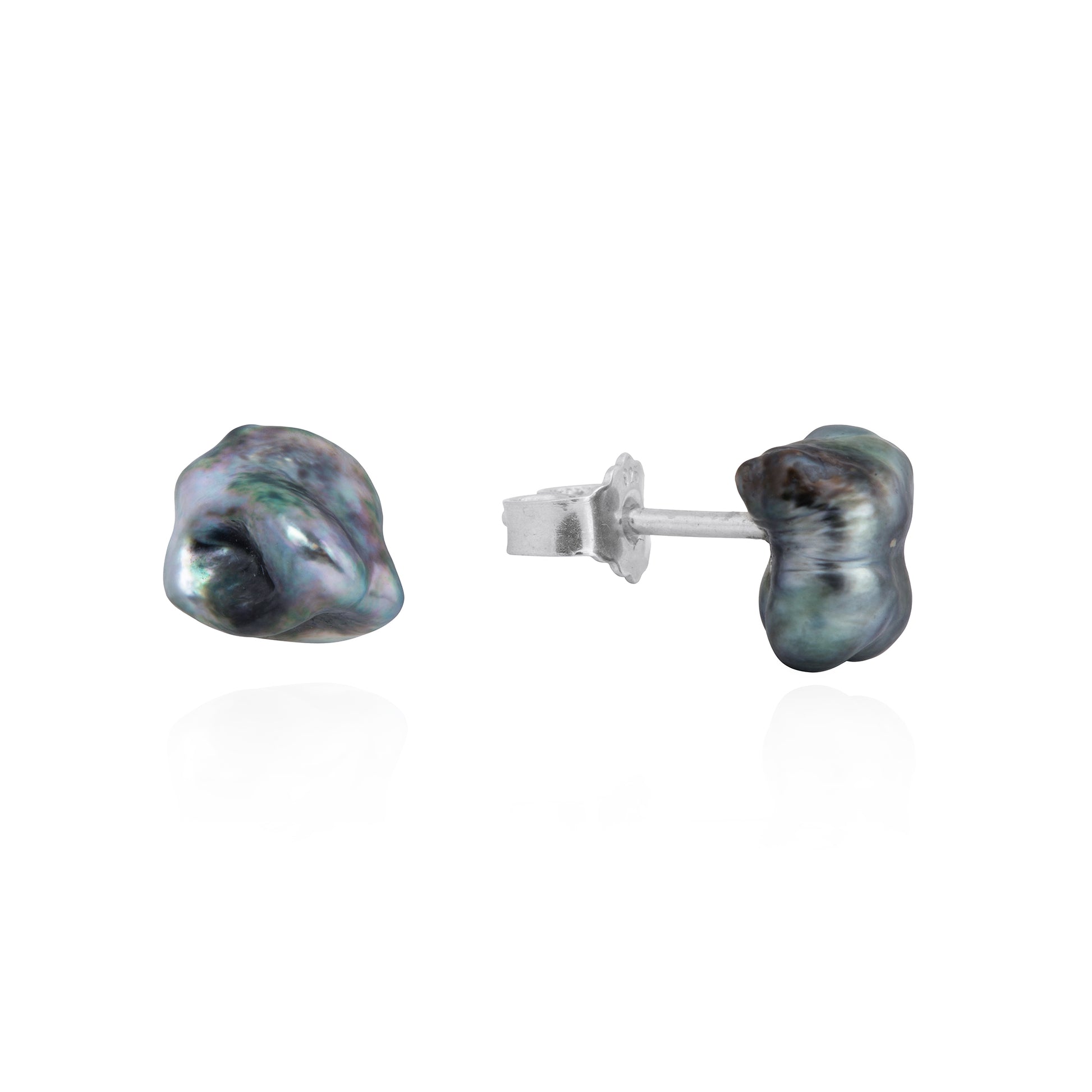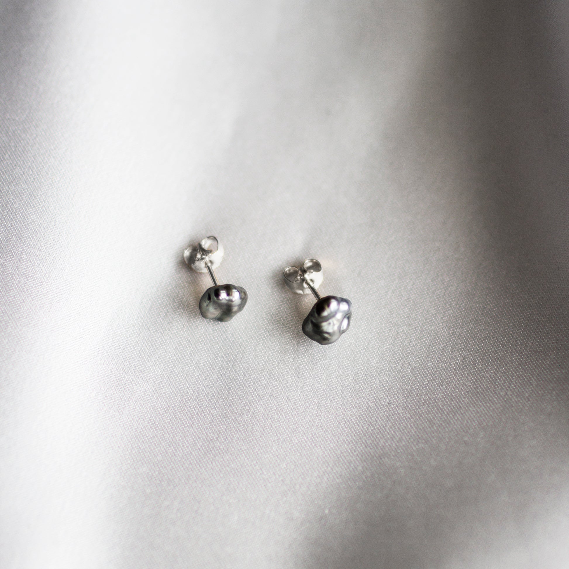 Unique Tahiti Keshi pearls made into a pair of simple silver earpieces.