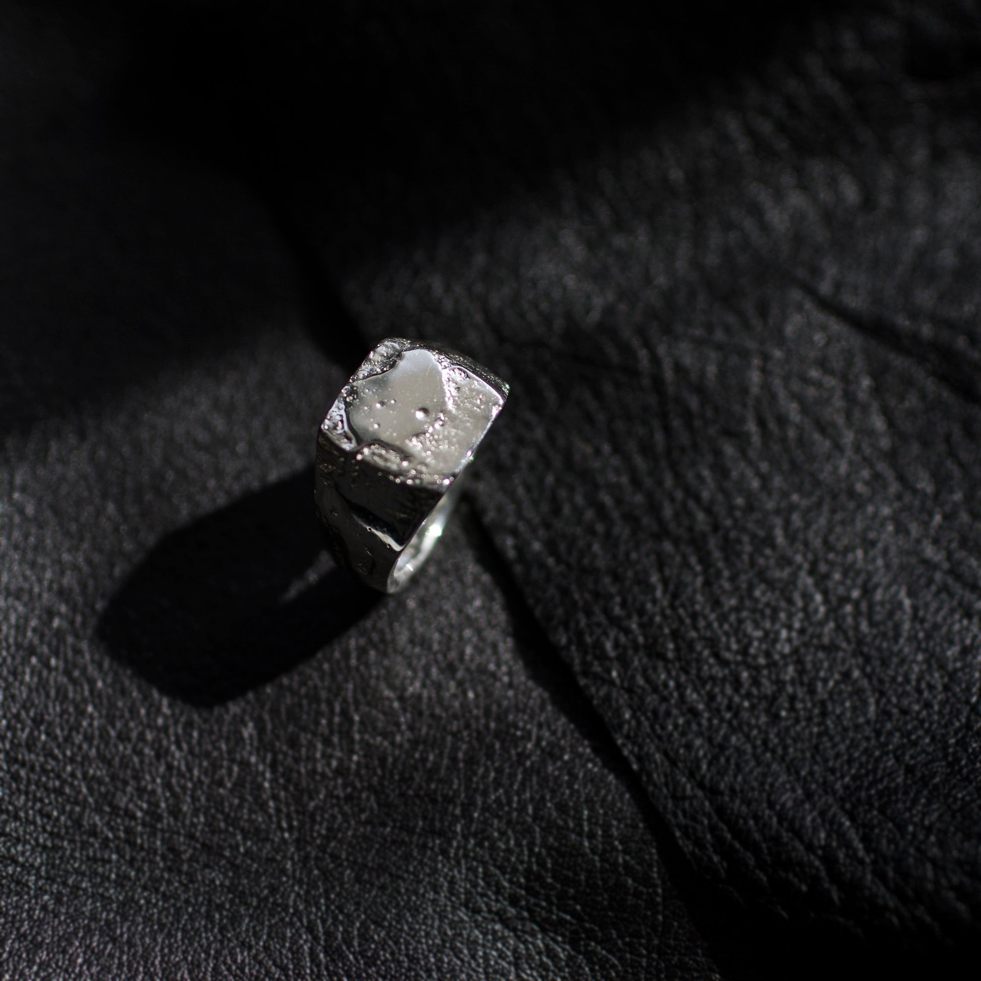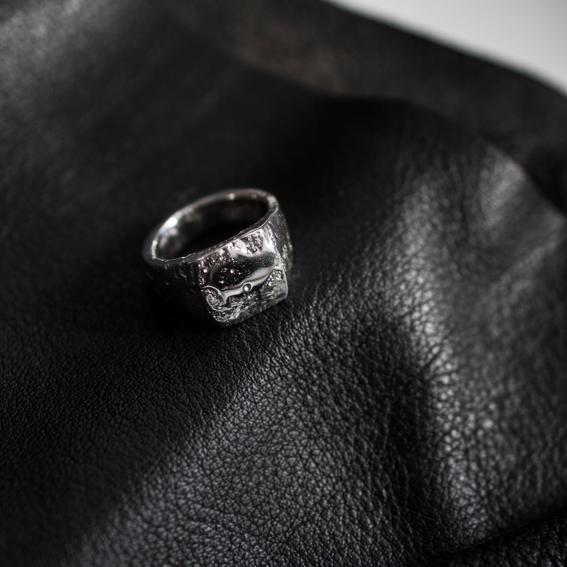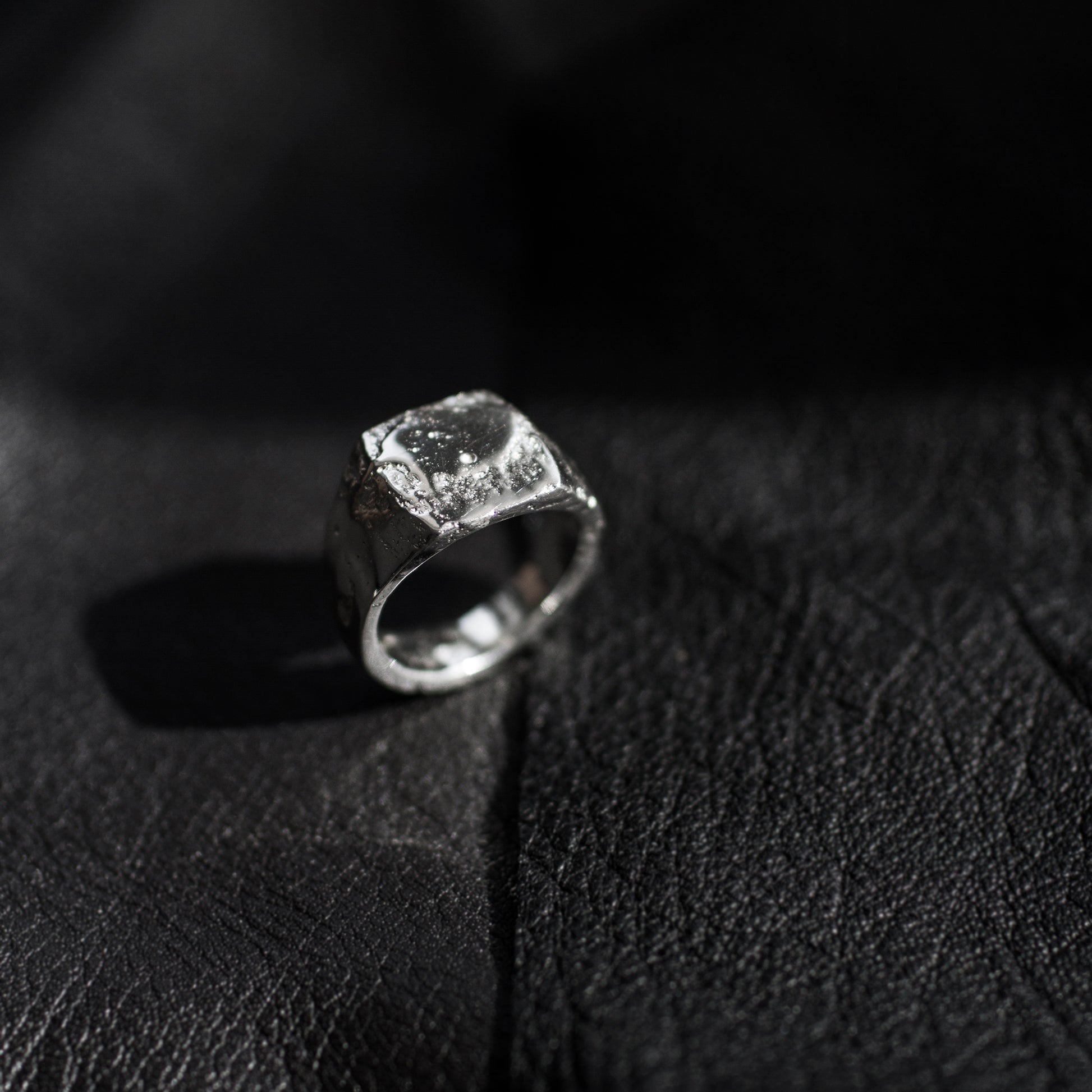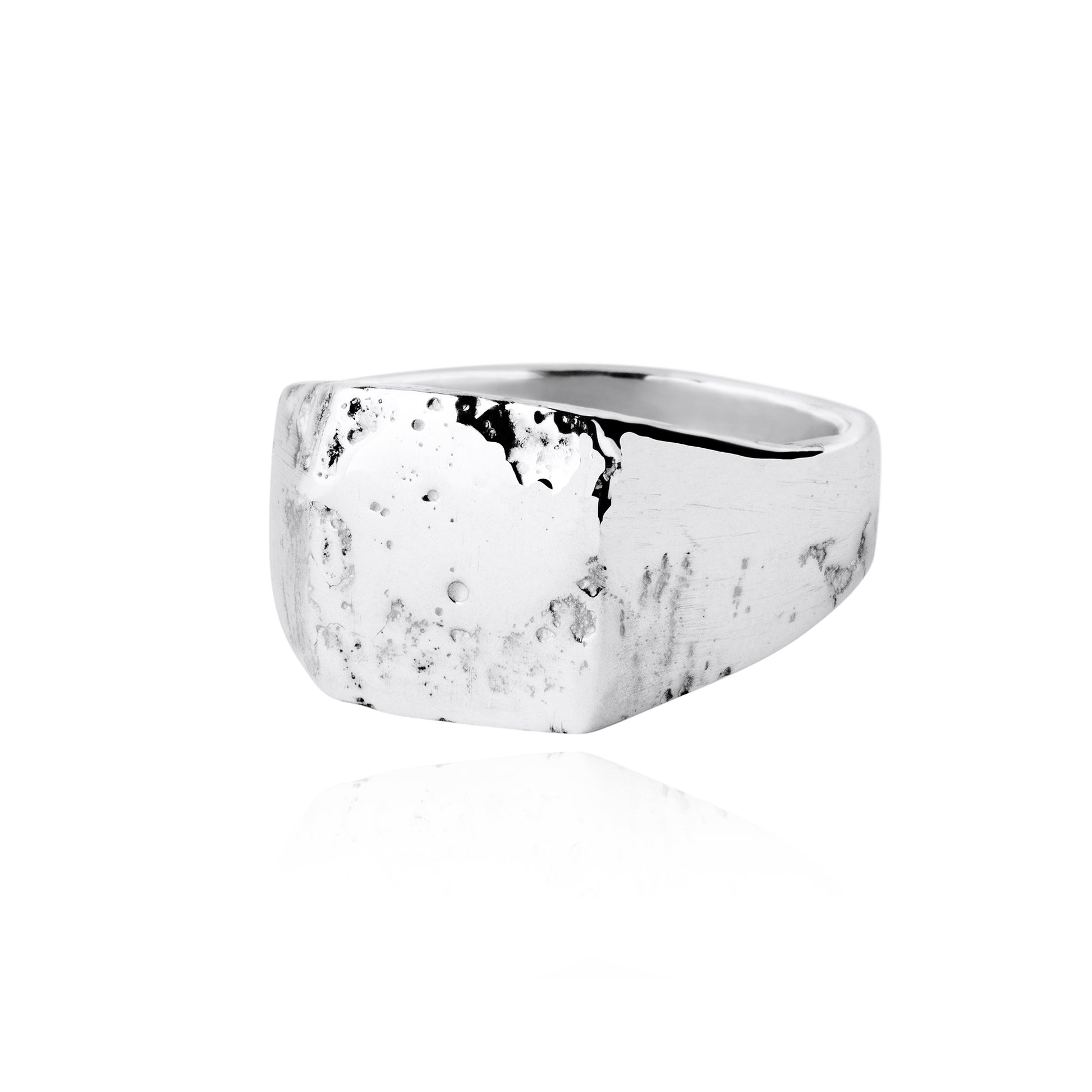 Solid moulded signet ring with a square shape and a rough surface. The surface may differ from ring to ring, therefore every piece is unique. Fits both woman and men.