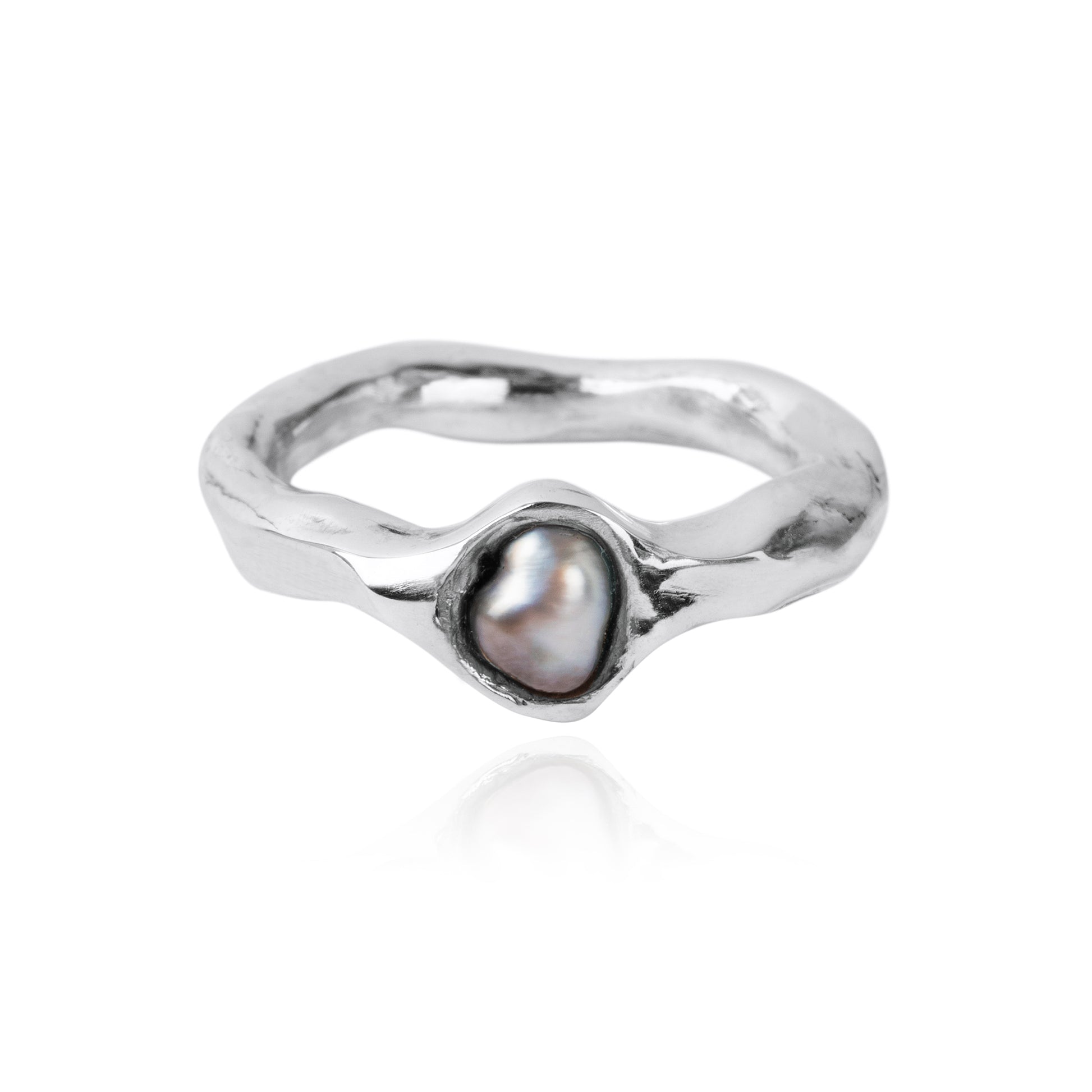 Sculptured silver arround a beautiful sustainable Tahiti Keshi Pearl. An organic and raw ring. This ring is the small version of the Keshi Ring. The pearl measures 5-6mm.