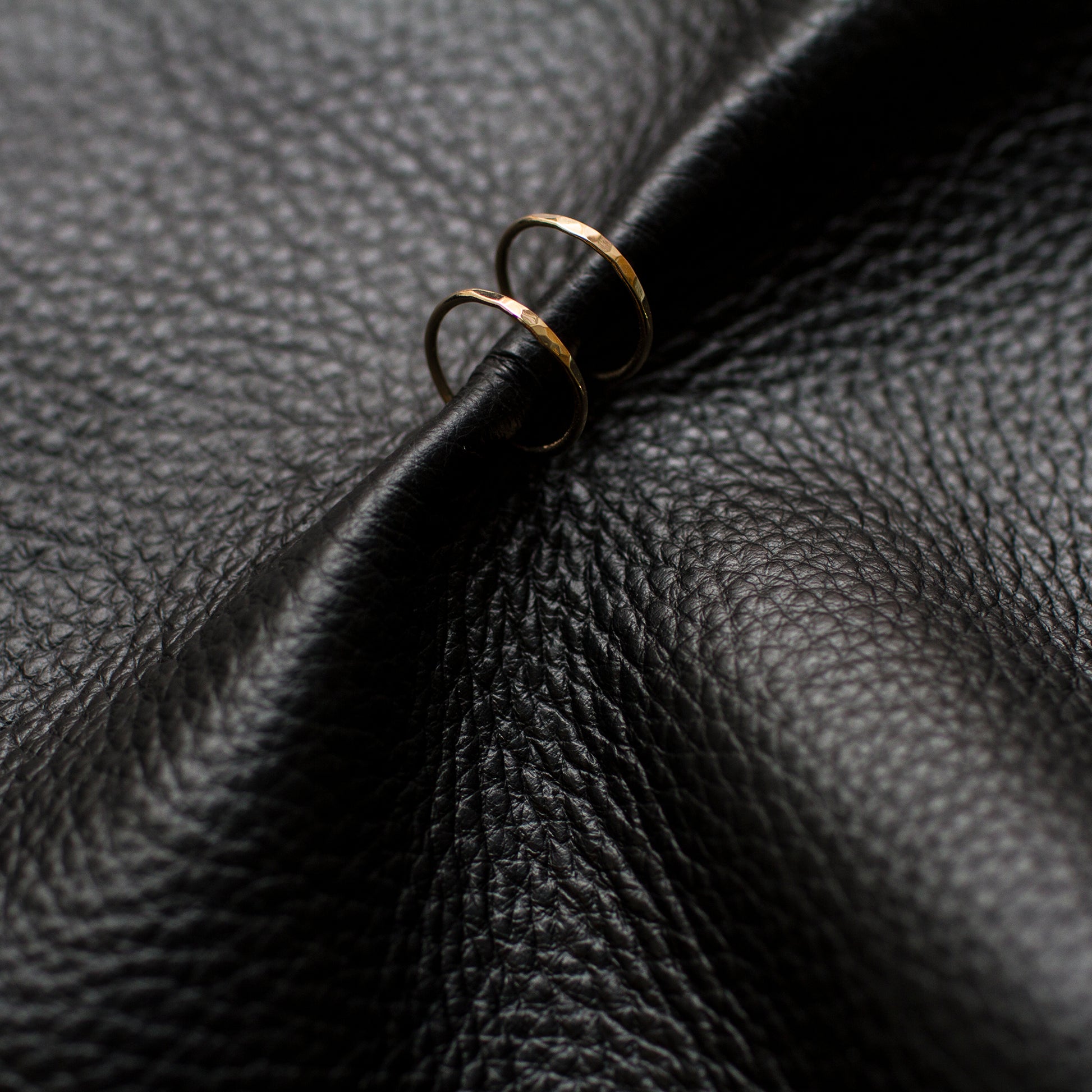 Simple and delicate small hoop 14k gold earrings with a hammered surface.