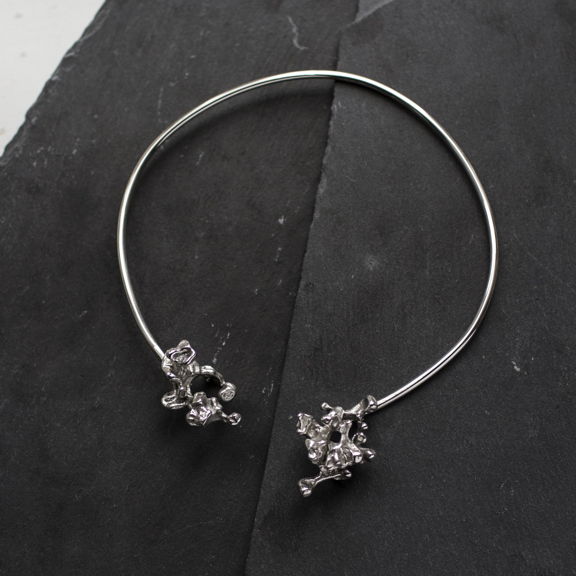 Statement unika choker with organic pieces of silver. The process of making the organic silver shapes is very free, therefore you will always end up with a unique piece of jewellery. A very significant neckpiece!