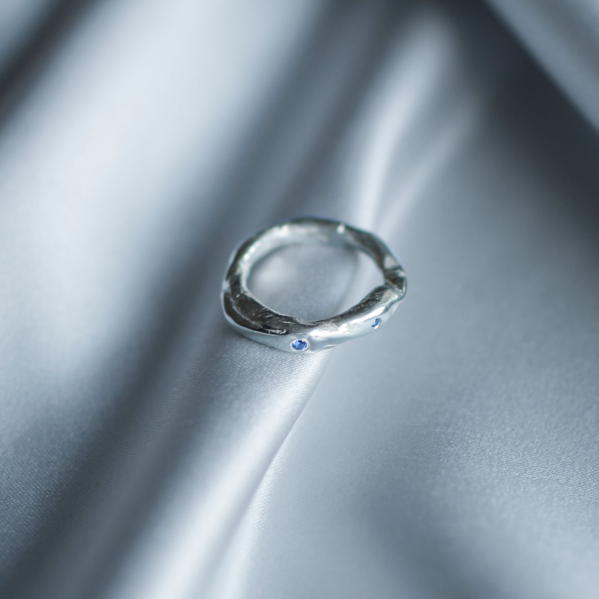 Bulge and chunky hand sculptured ring with a soft, shiny and organic surface. With two natural, un-heated blue sapphires from non-conflict area. A ring you can explore and discover over and over again - easily combined with other pieces.