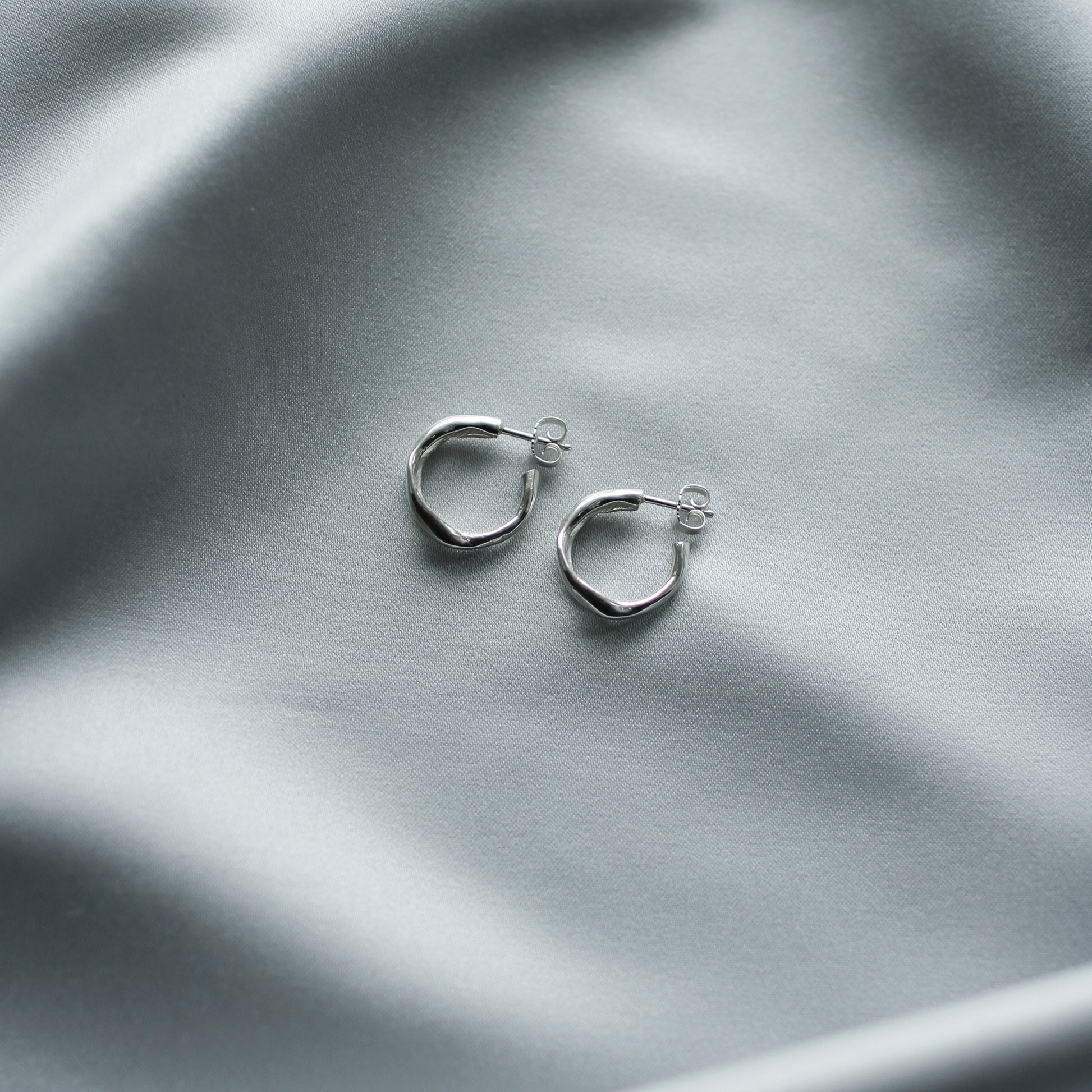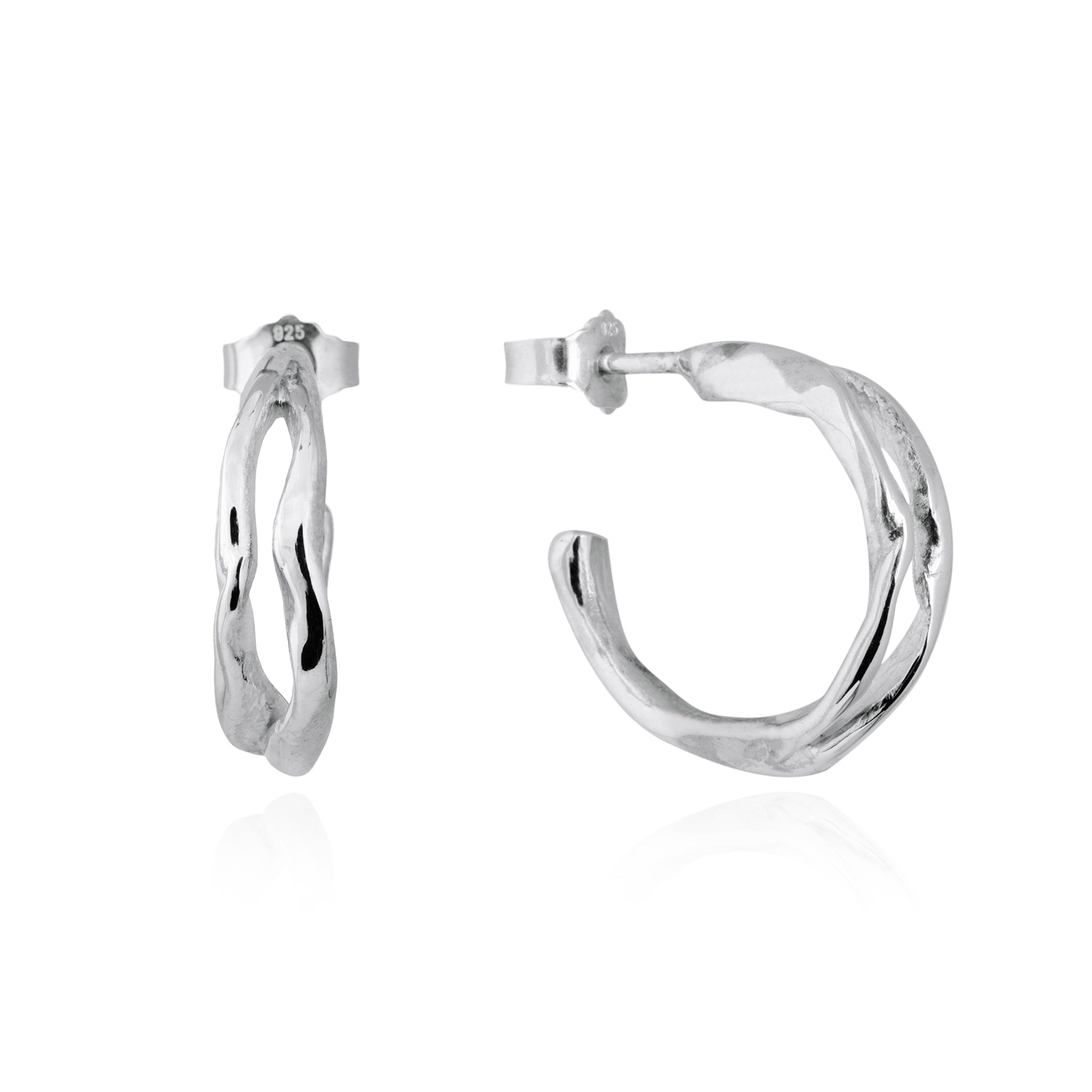 Bulge and chunky hand sculptured hoops with a soft, shiny and organic surface. The Sculptured Split Hoops have a nice detail formed as an open wave space on the front of the earrings. Easily combined with the other Sculptured pieces. Fits both woman and men.